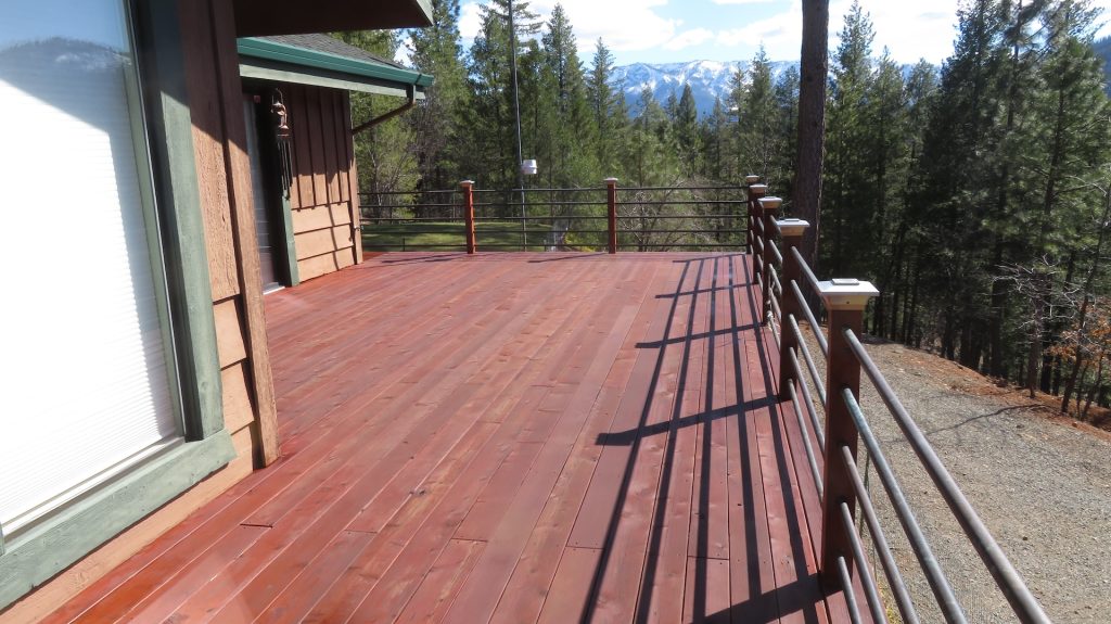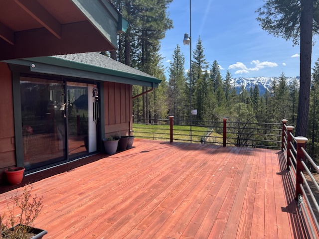 - Outdoor Living: Enjoy the beauty of nature from an extra-large wraparound solid redwood deck with copper railings and solar-powered post cap lights. During the hot summer months, relish the benefits of a large motorized Sunsetter awning, providing shade and extending your outdoor living space. If fishing, boating, or relaxing at the beach is your desire, the beautiful Lake Almanor is only 20 minutes away.